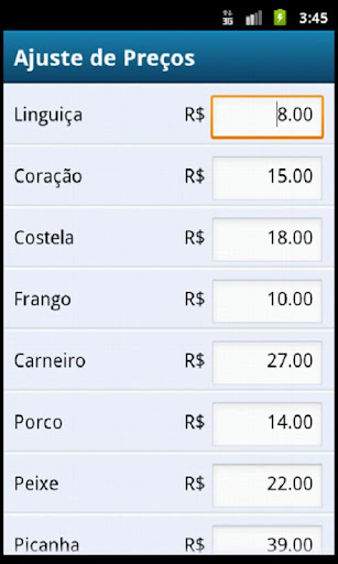 Obs: Para ajustar preços vá em Menu->Ajuste de preços e atualize o preço dos produtos com os valores desejados.